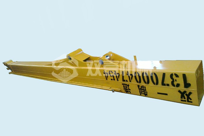 兩節(jié)伸縮臂是雙壹機械2005年自主研發(fā)的突破性產(chǎn)品,被多家同行模仿制造,從未被超越;臂長度19米,采用高噸位的三機聯(lián)動折彎設備折成U型,雙U型對接的焊接方式。