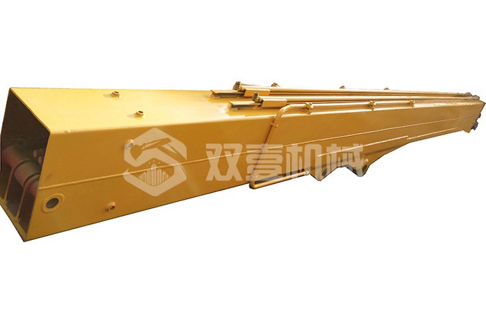 兩節(jié)伸縮臂是雙壹機(jī)械2005年自主研發(fā)的突破性產(chǎn)品,被多家同行模仿制造,從未被超越;臂長度19米,采用高噸位的三機(jī)聯(lián)動(dòng)折彎設(shè)備折成U型,雙U型對(duì)接的焊接方式。