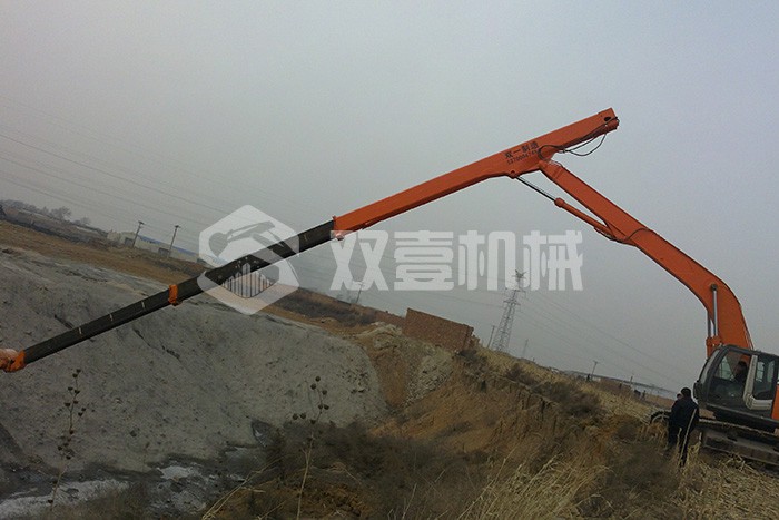 超長四節(jié)臂:總長度可達48米,臂內(nèi)可再伸出3節(jié),施工深度42.5米,配帶貝殼斗1.8立方或挖掘斗1.0立方。