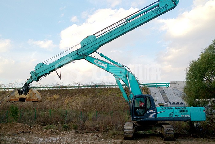 超長(zhǎng)四節(jié)臂:總長(zhǎng)度可達(dá)48米,臂內(nèi)可再伸出3節(jié),施工深度42.5米,配帶貝殼斗1.8立方或挖掘斗1.0立方。